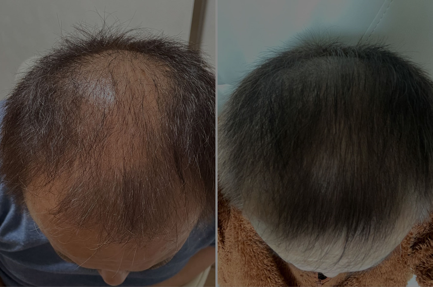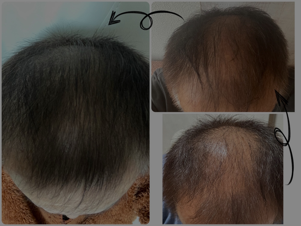 額から薄くなりはじめ、あとから頭頂部も気になり、さまざまな育毛剤で5年以上セルフケアを続けてきましたが、良くなるどころか額から頭頂部にかけても薄くなり、薄毛の面積が広がりだしていました。